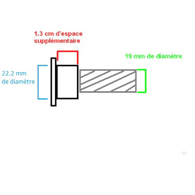 Votre rétroviseur Humpert Ergotec M 88 se monte en bout de guidon de vélo. Cet adaptateur permet de l’installer même si vous ne parvenez pas à dégager une zone de 13 mm sur le bout de votre guidon (schéma ci-dessous en rouge). Il vient lui même ajouter un espace au bout de votre guidon pour fixer aisément votre rétroviseur HUMPERT.