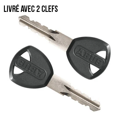 L’antivol Facilo 32 est fourni avec 2 clefs. Il possède une anse d’une longueur de 230 mm. Abus propose également le même antivol Facilo 32 avec une anse de 30 cm de long.