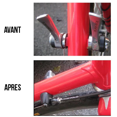 Butées de gaine dérailleur pour vélo de route Ces butées de gaine de dérailleur viennent se visser sur le cadre d’un vieux vélo de course. Elles permettent de déplacer le levier de vitesses du cadre au guidon. Pour déporter vos leviers sur le guidon, il vous faudra aussi les colliers de fixation de leviers de […]
