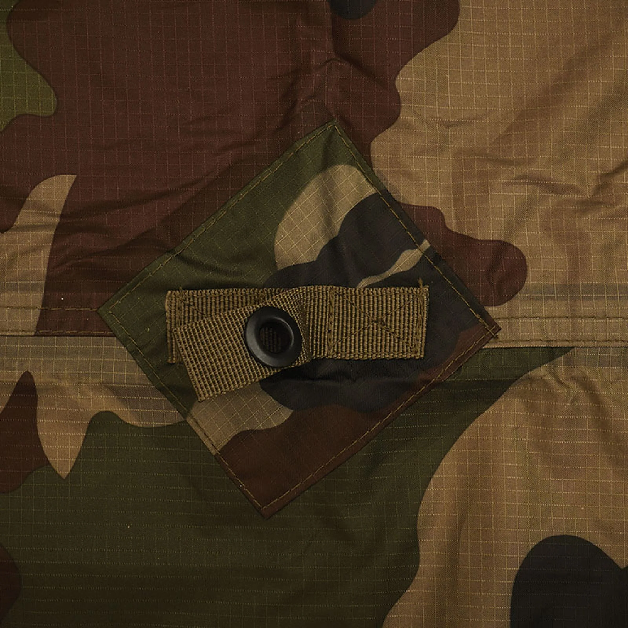 Le déploiement reste rapide grâce aux points d’ancrage répartis, aux œillets métalliques et aux sangles qui autorisent une fixation précise selon le terrain. Les coutures étanches limitent les infiltrations et renforcent la fiabilité de l’ensemble, qu’il s’agisse d’un abri ponctuel, d’une zone de travail protégée ou d’une couverture d’équipement lors d’une patrouille.