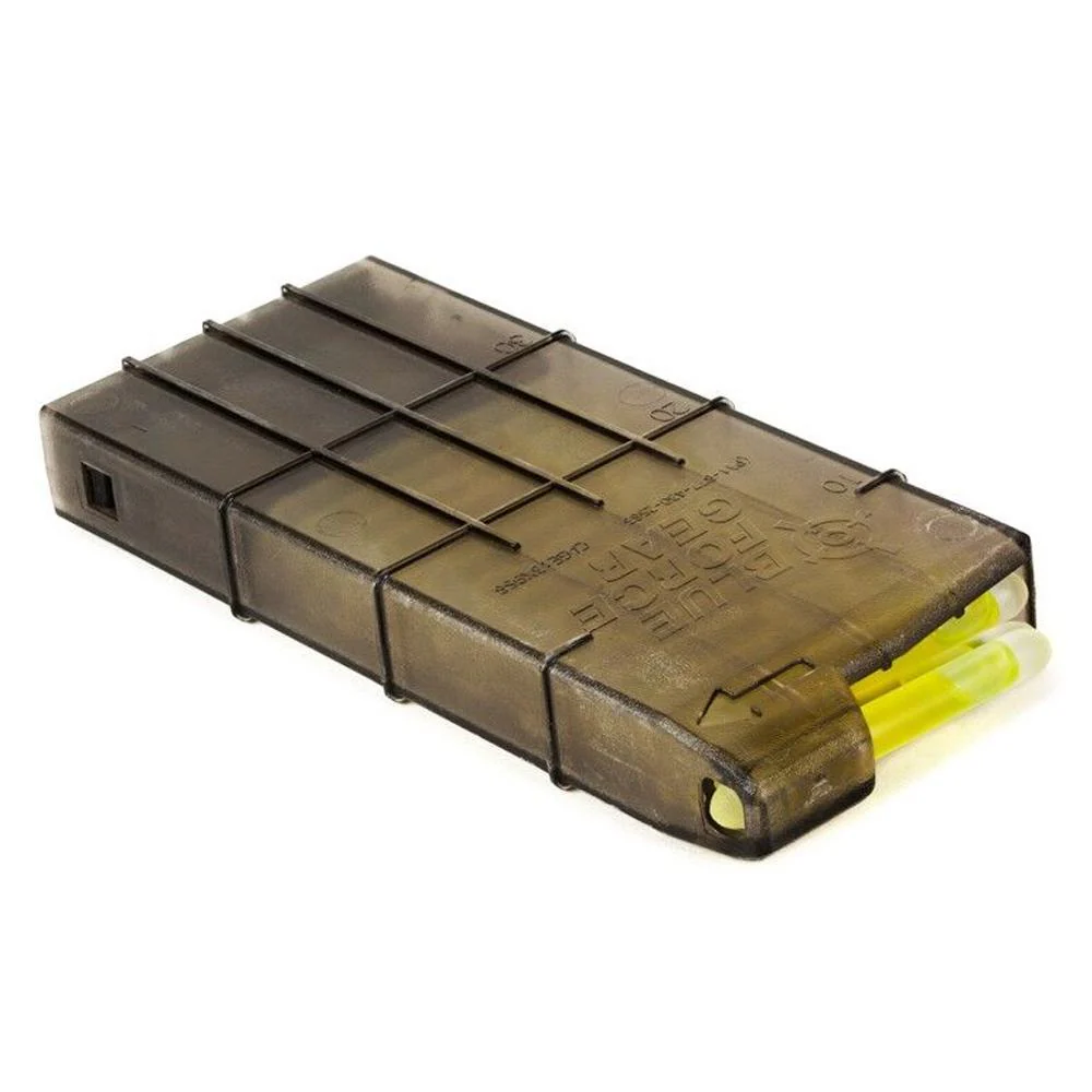 Conçu par Blue Force Gear, le Marco repose sur un corps en polymère pensé pour la fiabilité et la résistance. Son format compact de 13,5 x 5,9 x 1,85 cm et sa masse de 109 g limitent l’encombrement, favorisent la discrétion et s’intègrent facilement à l’équipement sans gêner la patrouille.