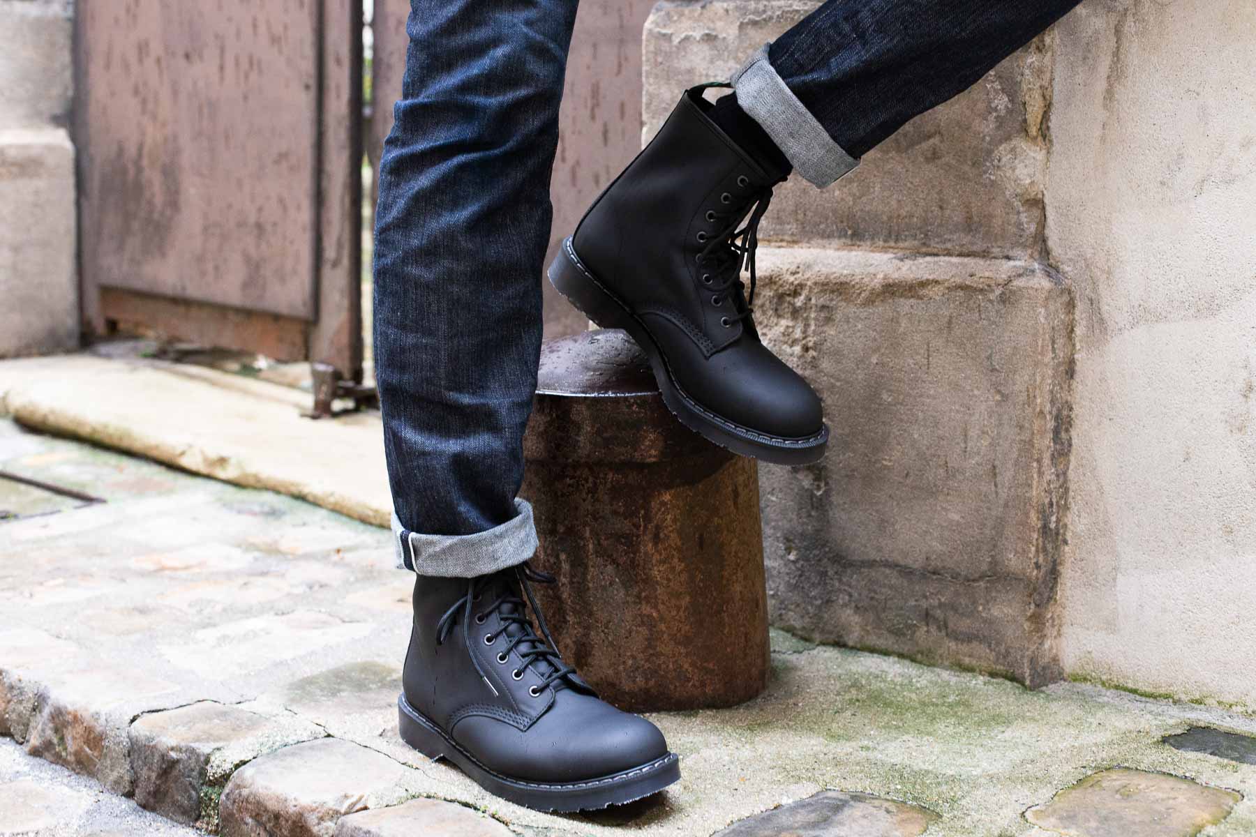 Boots 8 eye, Solovair, Black Greasy Seule notre sélection est disponible, aucune commande spéciale n’est acceptée par l’usine Solovair