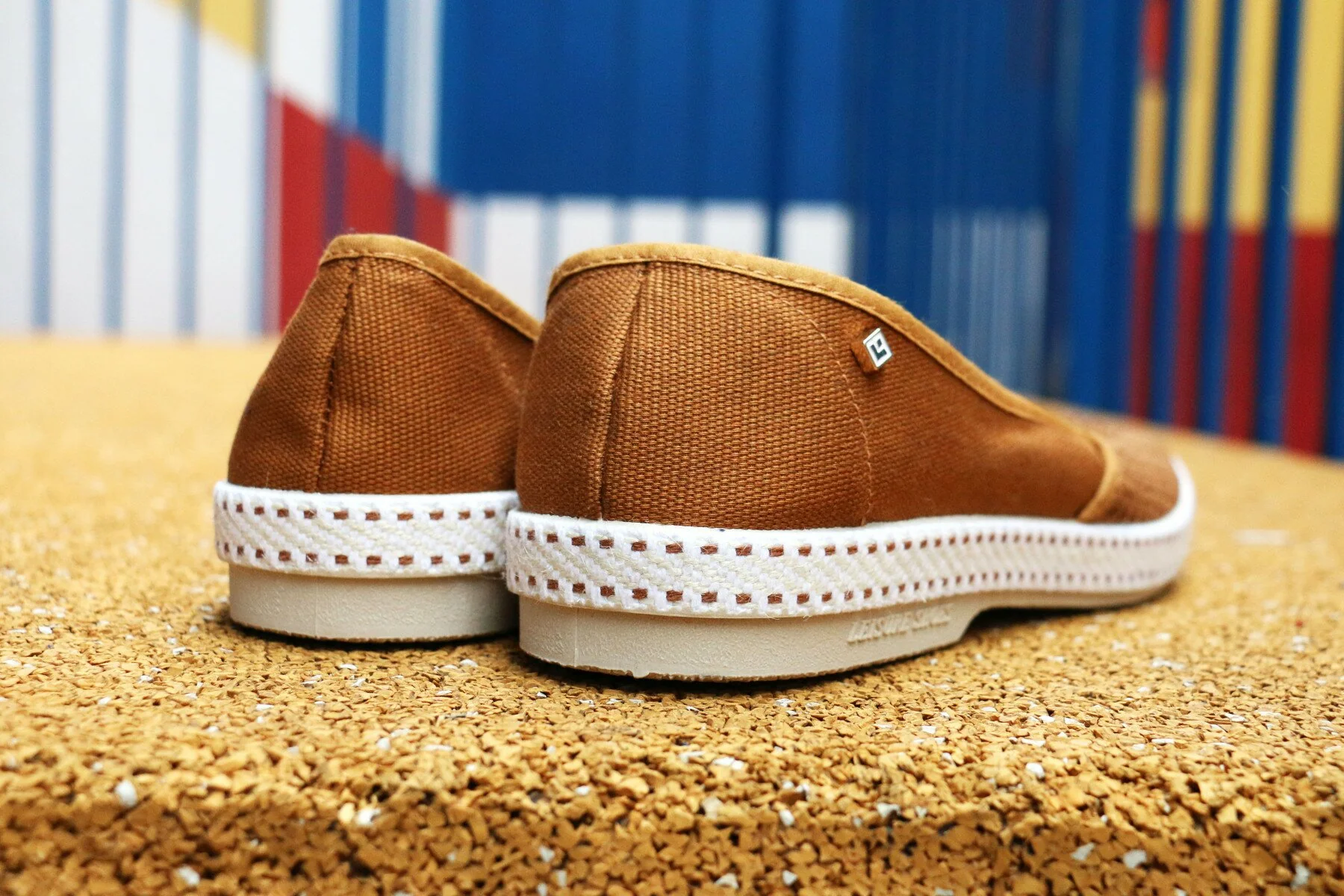 Mocassin toile camel. Couture Sandalette, semelle intérieure amovible et en cuir.