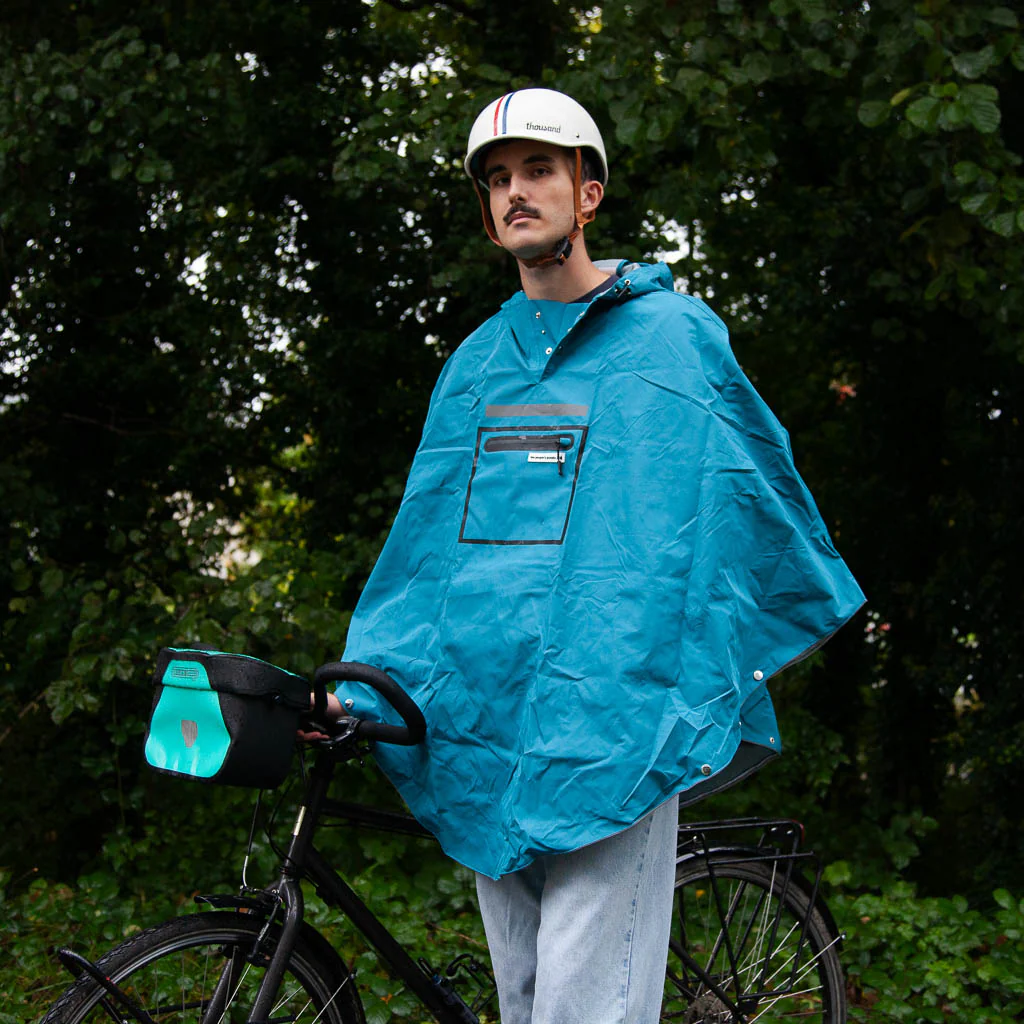 Ce poncho imperméable The People’s Poncho 3.0 est idéal à vélo, mais pas que… Conçu pour affronter les pires moussons comme la pluie londonienne, ce poncho en polyester japonais tissé est imper-respirant. Il est muni d’une ceinture et de passants aux mains pour rester en place à vélo, et couvrir parfaitement le buste, les bras et les jambes du cycliste. Mais il est également pourvu de boutons-pression sur les côtés pour former des manches, vraiment pratiques lorsque vous portez le poncho pour promener le chien, aller à un festival ou durant vos voyages. La capuche ajustable est étudiée pour garantir protection et confort, avec ou sans casque de vélo.