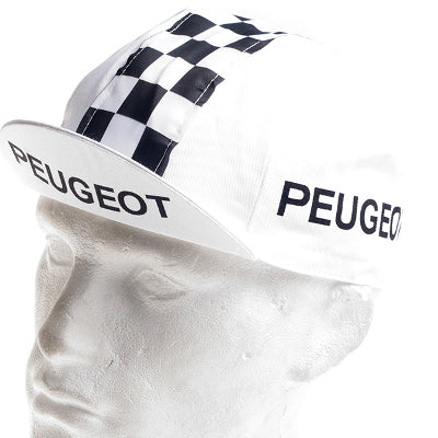 Casquette blanche à visière logo vintage Peugeot Cycles à damiers