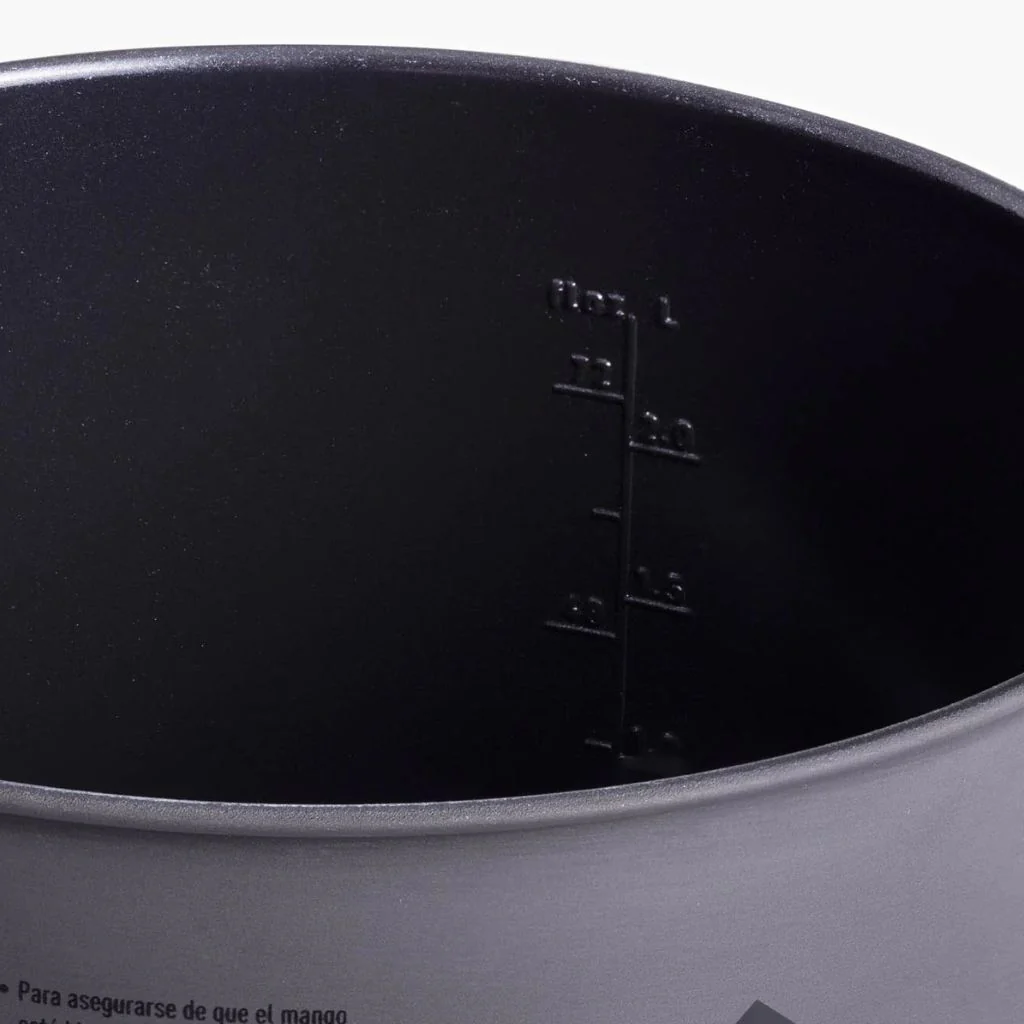 Avec son volume de 1,3 L, ses repères de mesure de volumes externes et internes, et son amplitude à la base, cette popote a été pensée pour une cuisine efficace et pratique en bivouac.