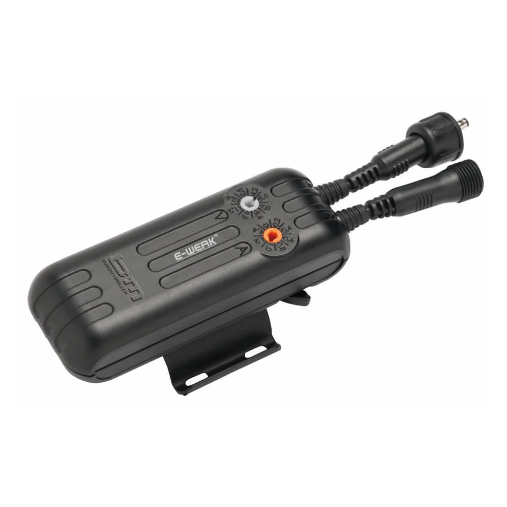 Est aussi disponible le convertisseur E-werk. Il s’agit d’une version avec la possibilité de régler le voltage de 2,8V à 13,3V et l’intensité de 0,1 à 0,15A et sans batterie tampon intégrée.