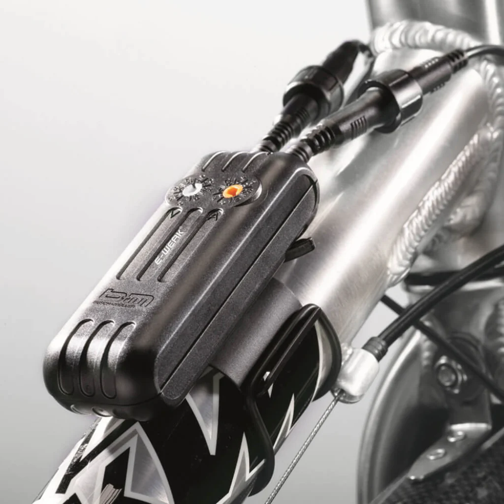 Un accumulateur tampon est intégré dans l’USB-Werk, ceci permettant que l’alimentation en énergie reste constante et ce, même à l’arrêt. En roulant pendant 10 min, sans aucun branchement et à une vitesse moyenne de 15 km/h l’accumulateur est chargé à son maximum. (ATTENTION : La batterie tampon précédemment utilisée sur l’E-Werk n’est pas compatible sur l’USB-Werk)