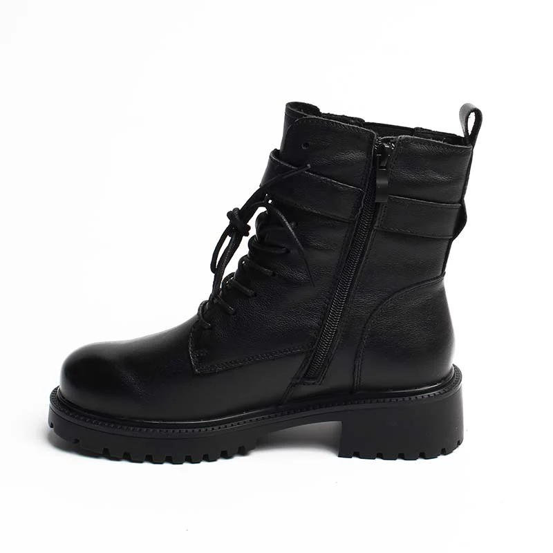 Le modèle EX113 est une paire de bottines 100 % en cuir de vachette avec une doublure en fourrure. Elles sont à la fois confortables et imperméables, idéales pour la saison hivernale.