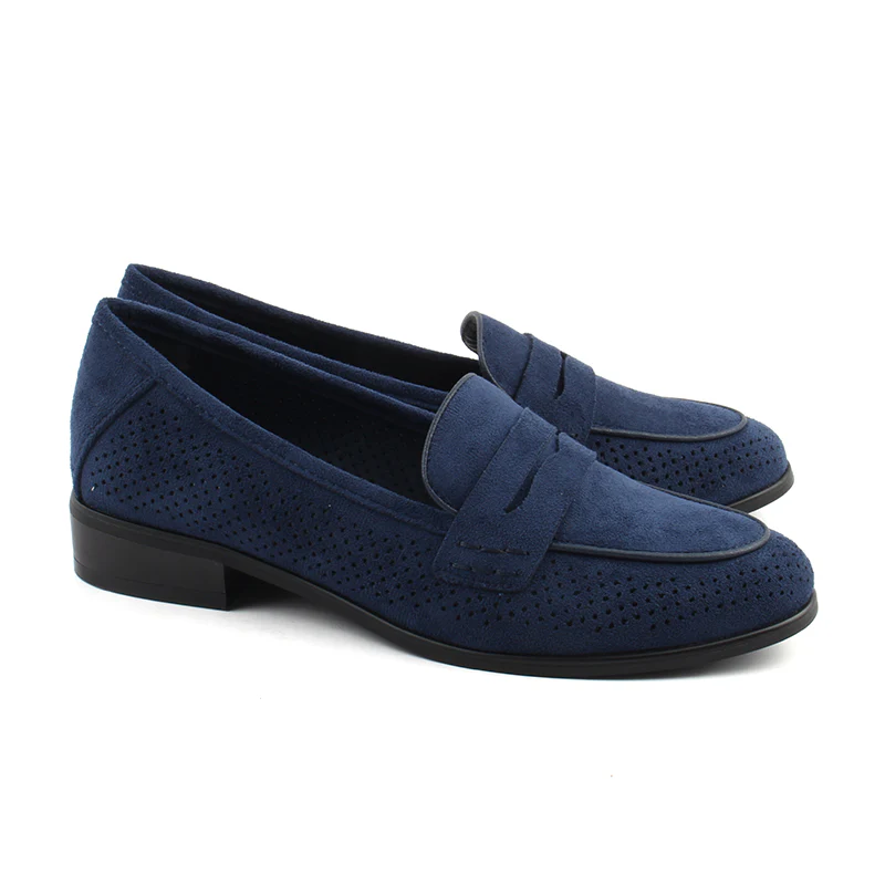 Chaussures Femme Mocassins, Couleur Daim Bleu Marine / L057-84 / MINIA