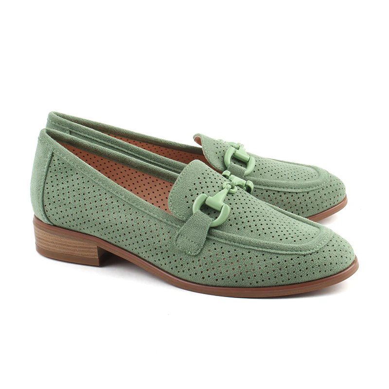 Chaussures Femme Mocassins, Couleur Daim Vert D’Eau / L056-91 / MINIA
