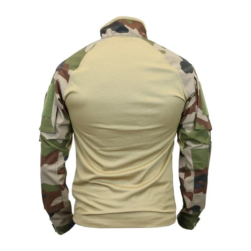Les manches en polyester/coton ripstop avec traitement DWR apportent une résistance fiable à l’usure et aux accros. Deux poches à soufflets inclinées sur les épaules, zippées et protégées par rabat autoagrippant, facilitent l’accès aux équipements essentiels pendant une patrouille ou un changement de position.