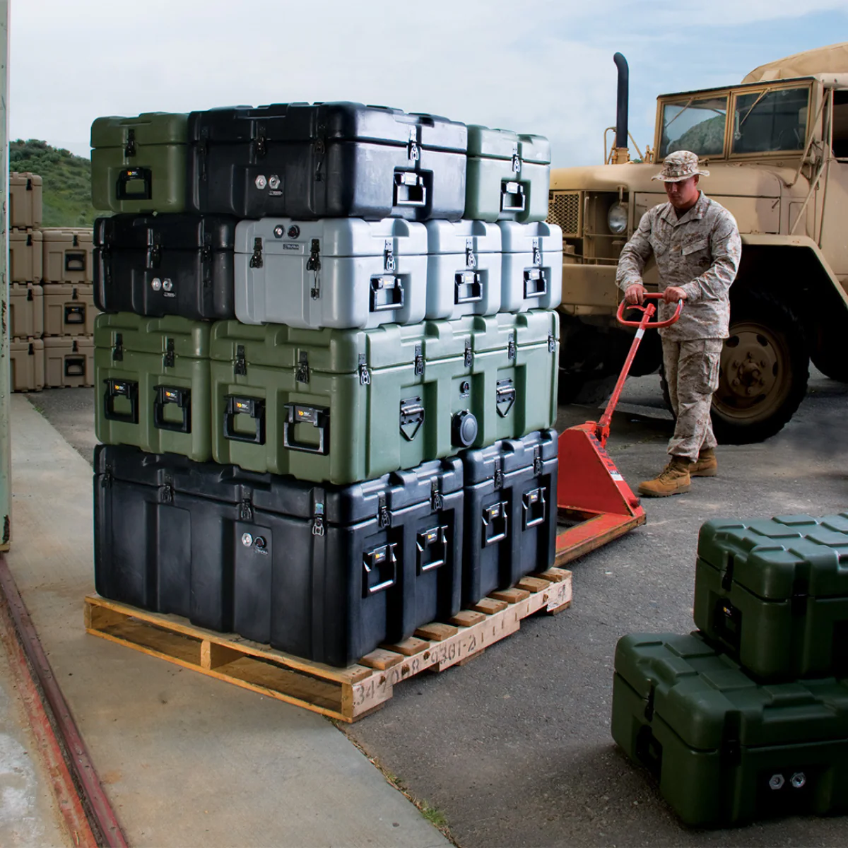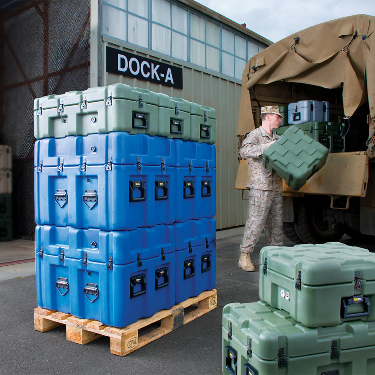 Une cargaison instable peut ralentir vos opérations et mettre en péril votre mission si le fret est endommagé. Les nouveaux conteneurs ISP2 de Peli éliminent pratiquement tout mouvement du chargement, grâce à leur système unique Inter-Stacking Pattern (ISP). Ce système est compatible avec les 64 modèles de taille différente, pour un stockage allant de 0,018 jusqu’à 0,576 mètres cubes. Équipé d’un joint torique en silicone et de détendeurs de pression, le conteneur ISP² est imperméable aux conditions météorologiques et humides extrêmes.