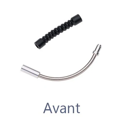 Le coude est proposé en version rigide de 5.1 mm de diamètre en acier inoxydable ou en version flexible de 4 mm en aluminium (+ 1€ en option).
