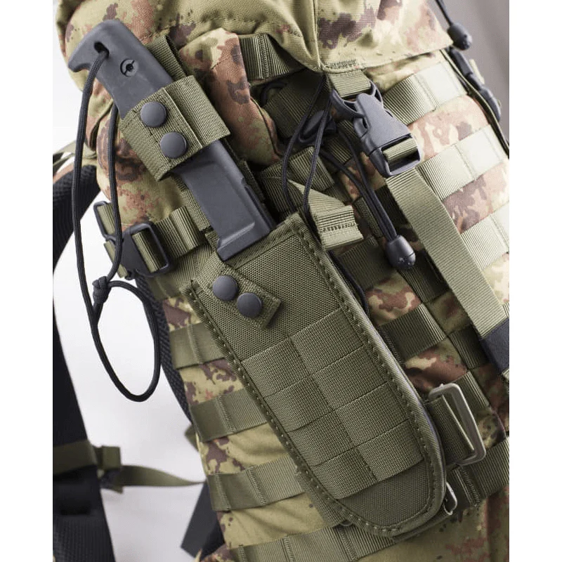 Le fourreau intègre des passants MOLLE pour une fixation stable sur ceinturon, gilet ou plate carrier. Cette interface de port facilite l’accès en patrouille, optimise l’ergonomie de l’équipement et soutient la performance au quotidien. Dimensions totales: 31,2 x 16 x 0,63 cm, pour une intégration simple dans un kit orienté efficacité et précision.