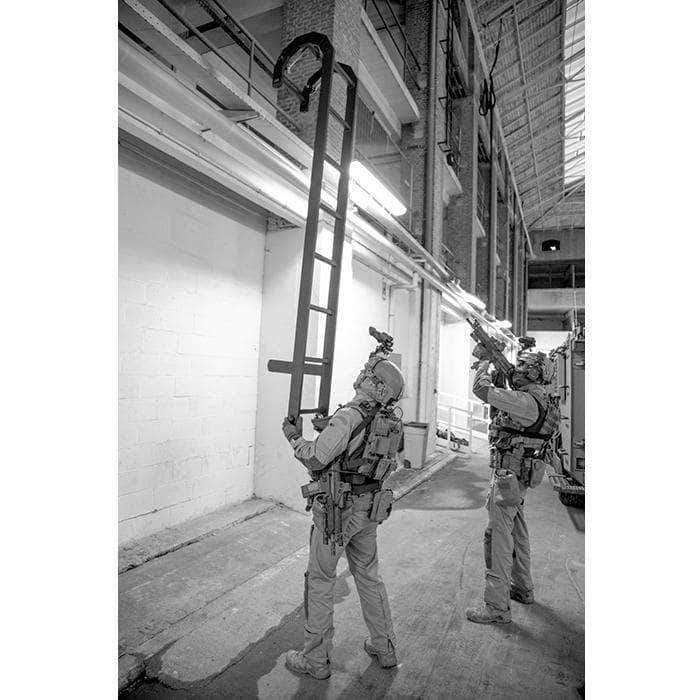 Les barreaux espacés à 280 mm et la largeur utile de 300 mm favorisent une montée fluide, y compris en conditions exigeantes. Le profil carré 30 x 30 mm garantit une prise ferme et précise, ce qui améliore l’efficacité des actions lors d’une opération ou d’une patrouille. Sa capacité à flotter augmente la sécurité lors de franchissements variés.