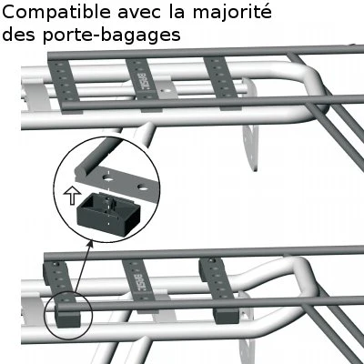 Dans le cas où vous avez un vélo électrique avec batterie sous le porte-bagages, il faut vous assurer que vous ayez l’espace nécessaire entre la batterie et le porte bagages pour les vis. Sachant que la rallonge se fixe sur le porte bagages à l’aide d’une vis d’une longueur de 42 mm.