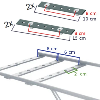 Les dimensions du produit sont : 40,5 cm de long, 14,5 cm de large, des tubes de 7 mm de diamètre. Voir la photo 3 pour des mesures plus complètes. L’extension pèse 900 grammes et supporte un poids allant jusqu’à 5 kilos.