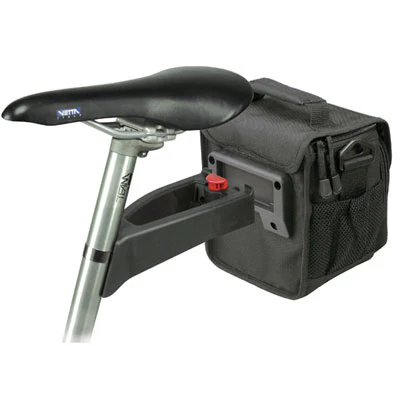 Cette fixation KlickFix sur tige de selle permet de fixer un panier ou sacoche à l’arrière du vélo via la tige de selle du vélo. Le champ de vision n’est plus obstrué et le guidon moins encombré : ceci facilite l’installation de compteur, éclairage, sonnette. Cette fixation s’adapte sur les tiges de selle dont le diamètre est compris entre 25 et 32 mm. Un collier pour tige de selle de 32 à 36 mm de diamètre est également disponibles. Elle peut transporter jusqu’à 5 kgs.