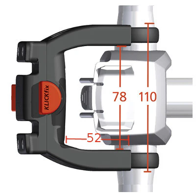 Elle est également 22 mm plus longue que les versions classiques et dispose d’un entraxe de 78 mm, d’une profondeur de 45 mm et d’une largeur de 110 mm. Ce support convient à tous les cintres ayant un diamètre situé entre 22 à 31,8 mm. Pour les guidons plus larges, vous trouverez des boucles adaptées aux cintres de 31,8 mm ainsi que des boucles pour guidons de 35 mm. Klickfix annonce également que cette fixation est compatible avec les consoles Bosch pour VAE.