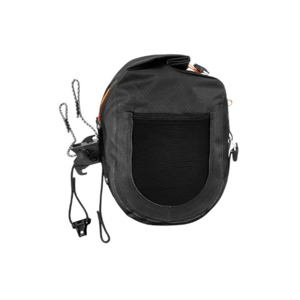 Niveau visibilité, Ortlieb a pourvu son bloc de fixation d’un film réfléchissant sur le devant.