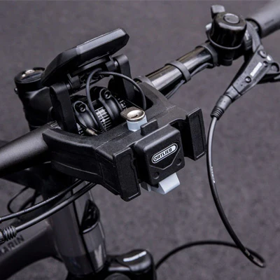 Attache sécurisée sacoche Ortlieb et Klickfix avec câblage électrique