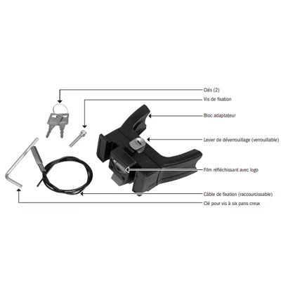 Avec cet adaptateur sécurisé Ortlieb, vous pouvez accrocher et décrocher votre panier ou sacoche de guidon très rapidement. La serrure sert à verrouiller la sacoche sur le guidon afin de pouvoir la laisser dessus en toute sécurité. La fixation est livrée avec 2 clés qui sont recommandables en cas de perte. L’installation est simple et rapide avec un seul câble à passer autour du guidon. L’adaptateur est compatible avec toutes les sacoches Ortlieb Ultimate Six Pro E à partir de 2013 ainsi que les équipements KLICKfix.