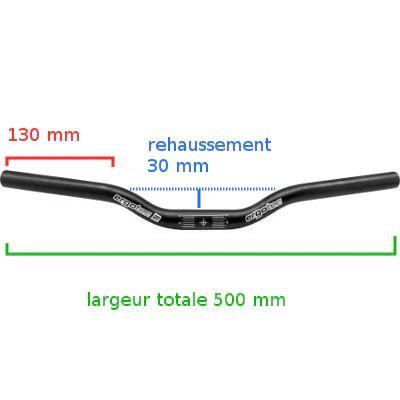 Fabriqué en aluminium, le cintre de vélo Ergotec est léger et pèse seulement 238 grammes. Il résiste à la corrosion. Avec une largeur de 500 mm, le guidon est relevé avec un rise (réhaussement) de 30 mm. Le diamètre au centre du cintre est de 25.4 mm. Le guidon se monte sur des potences de même diamètre telles que :