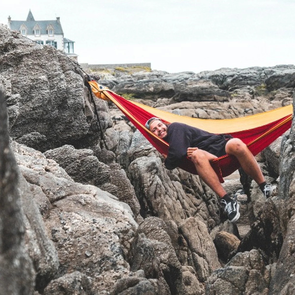 En bikepacking, pouvoir s’arrêter confortablement ne dépend pas toujours du terrain. Entre deux arbres, sur une aire de bivouac ou lors d’une pause prolongée, disposer d’un point de repos suspendu permet de s’affranchir du sol, de l’humidité et des irrégularités. Le hamac de voyage Ticket To The Moon Original répond à cet usage en proposant un hamac léger, compact et rapide à mettre en place, adapté aux aventures itinérantes.