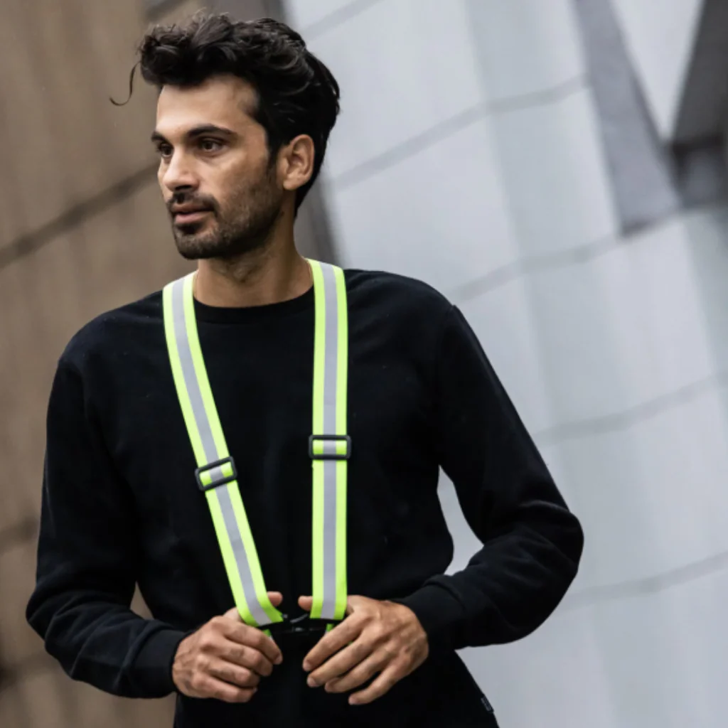 Harnais jaune réfléchissant réglable pour piéton ou cycliste