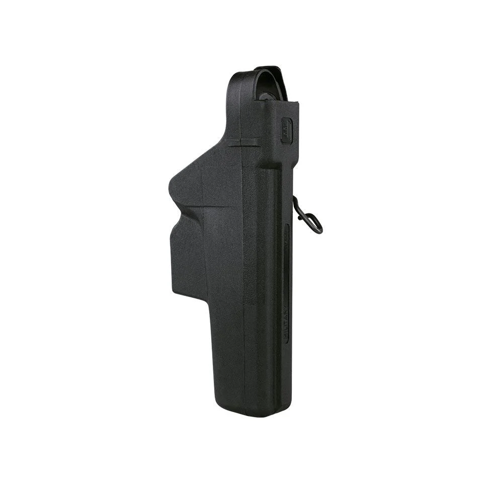 Sa rétention Niveau 2 offre un verrouillage sûr et une libération maîtrisée, afin de maintenir l’équipement en place lors des déplacements rapides, des transitions et des phases de patrouille. Le positionnement du holster a été pensé pour optimiser la précision des gestes et la continuité de l’action, sans compromettre la fiabilité du maintien.