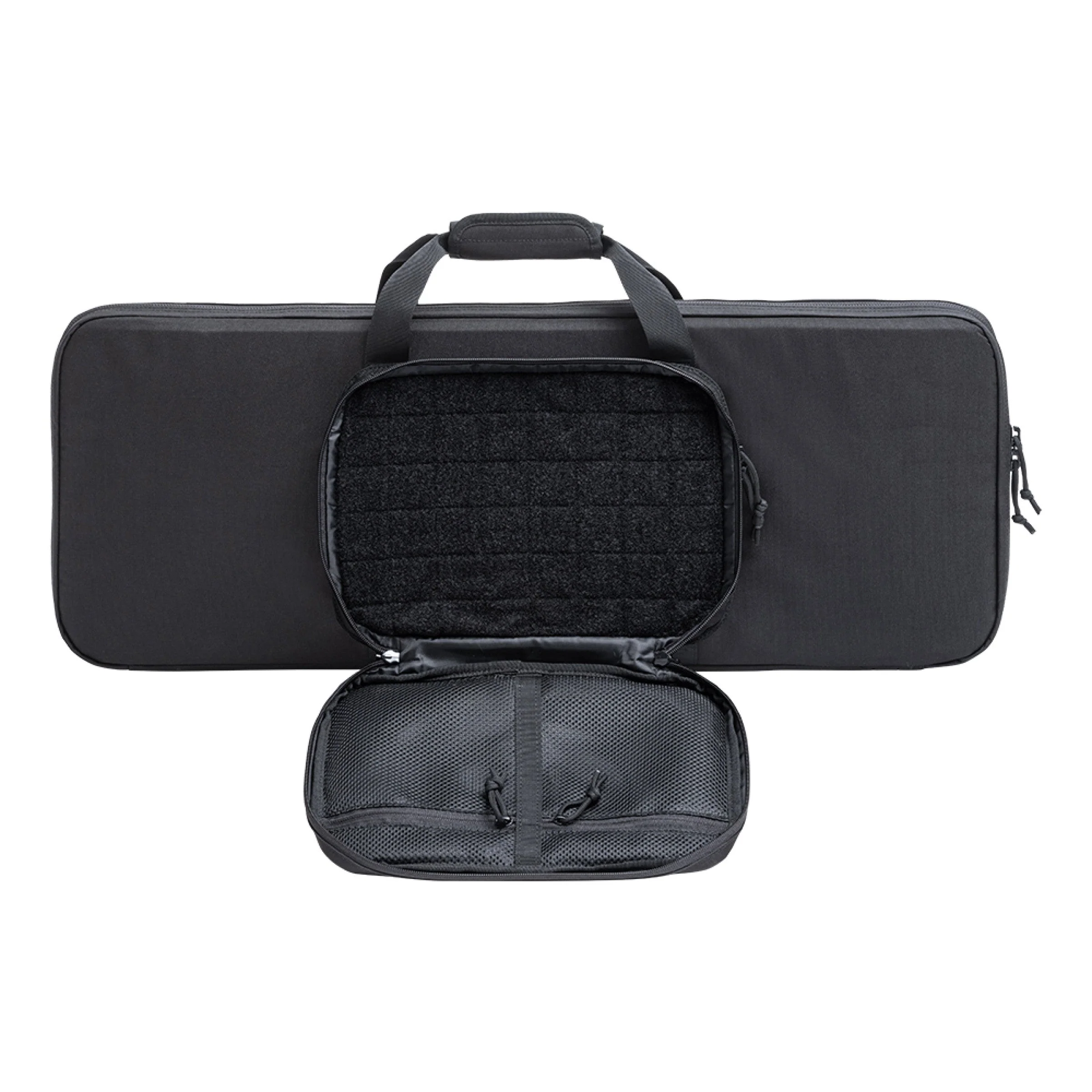 Le tissu Oxford Polyester 600D avec traitement DWR offre une protection déperlante face aux conditions exigeantes. Les fermetures à double zip avec curseur compatible cadenas renforcent la sécurité, et l’acceptation des cadenas TSA (01.084400) simplifie le passage en zone contrôlée. La poche frontale à double zip intègre une surface Velcro et deux poches zippées en mesh pour organiser chargeurs, outils et accessoires, ce qui garantit un accès rapide et précis.