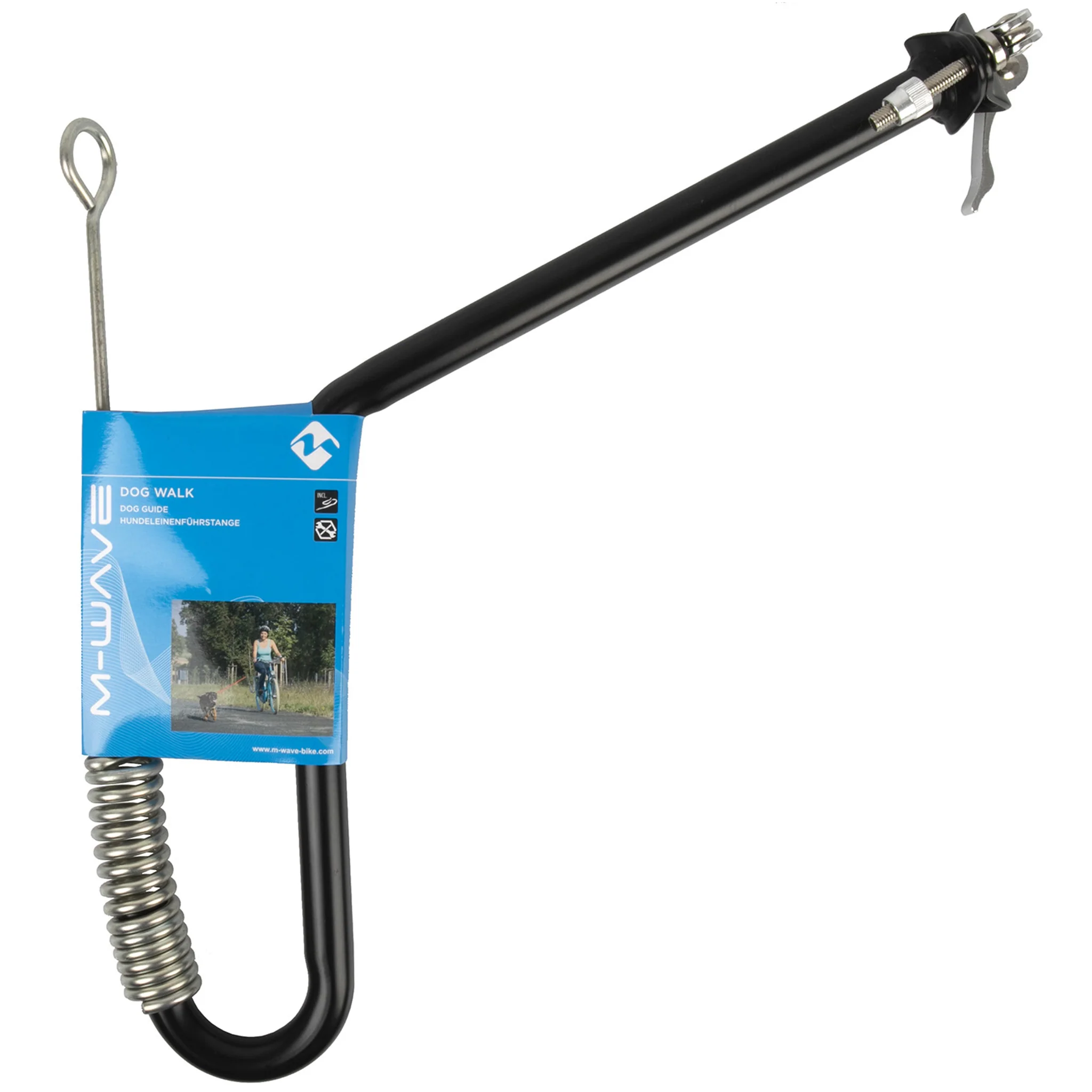 Grâce à son système de fixation, la laisse M-WAVE s’adapte aux tiges ou le tube de selle d’un diamètre de 28,6, 31,8 et 34,9 millimètres. Sa barre de guidage possède un ressort de stabilité, qui permet de pouvoir utiliser la laisse quel que soit le poids du chien sans perdre l’équilibre. De plus, en cas d’accélération ou d’écart soudain de votre chien, la laisse se détachera automatiquement, pour ne pas chuter. Pour plus d’informations, vous pouvez consulter la Notice d’utilisaion M-WAVE