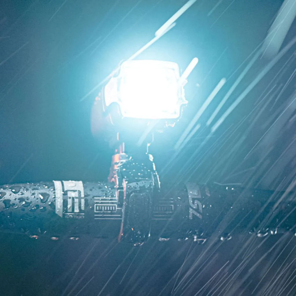 L’éclairage Supervision F200 a quatre modes : deux modes continus et deux modes clignotants d’intensités différentes. Le bouton qui permet de changer de mode est au centre de la lampe pour un accès facile en roulant. Cet éclairage avant résiste à la pluie et aux impacts, une fois le bouchon du port USB bien fermé (certifié IPX6) – idéal pour faire face aux aléas des trajets quotidiens.