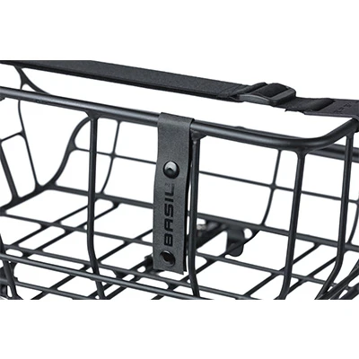 Panier vélo à mailles noires élégant avec sangle Basil Portland 25 L