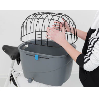 Le panier pour chien Trixie permet de transporter un chien jusqu’à 6 kilos sur le porte-bagages arrière de votre vélo. Bien protégé par une cage amovible, votre animal dispose d’un coussin isotherme et anti-dérapant pour son plus grand confort. Un passage à l’avant au milieu du panier permet de faire passer votre laisse pour que vous puissiez sécuriser votre chien au panier et éviter qu’il ne saute.