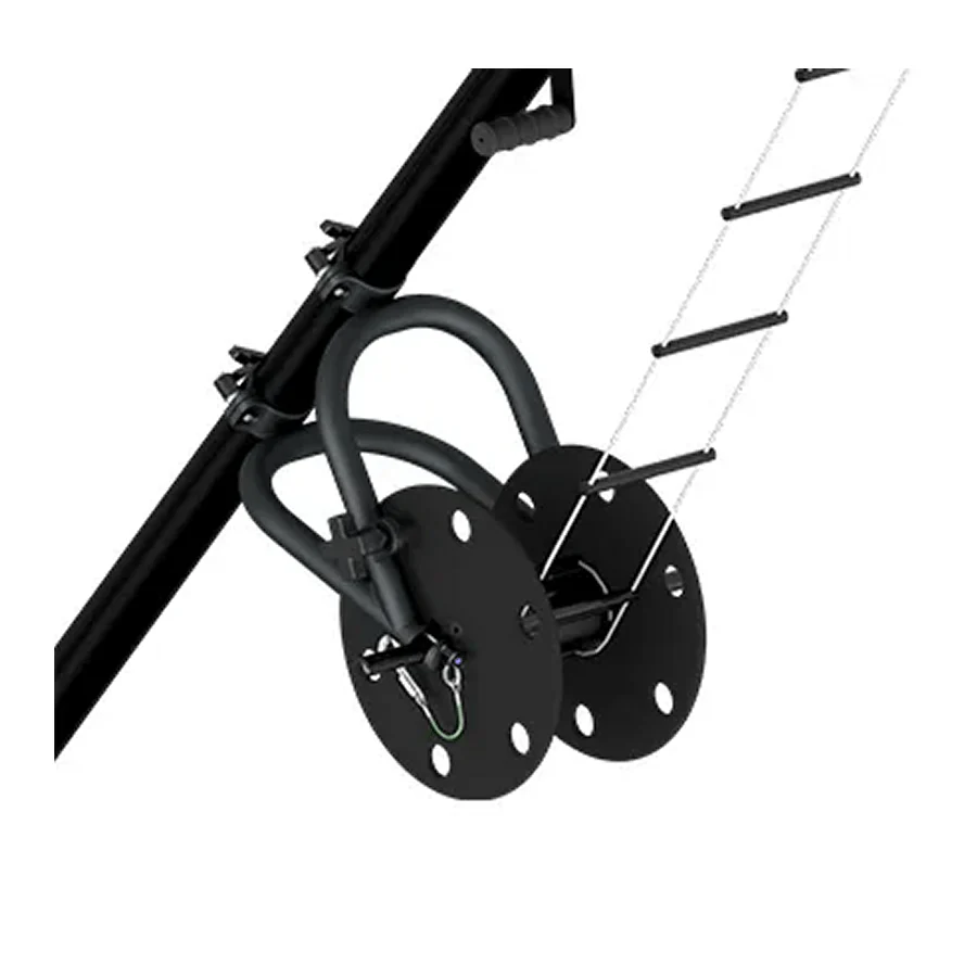 L’ensemble intègre un support d’échelle, une bobine enrouleuse et des goupilles à dégagement rapide. La rupture de verrouillage horizontale stabilise la bobine lors des déplacements, améliore la mobilité et limite les mouvements parasites en patrouille ou lors du transfert de matériel.