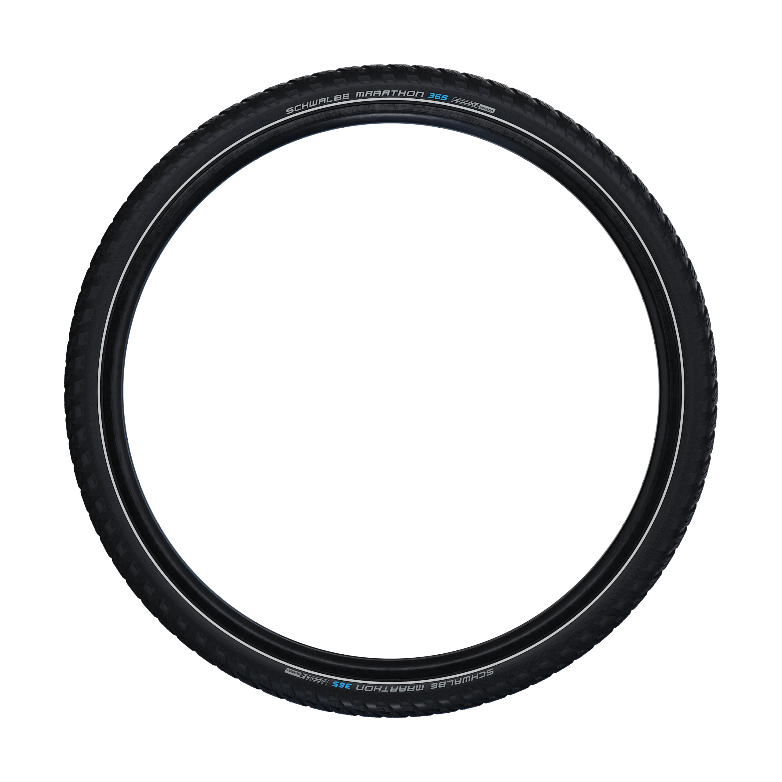 Le pneu Marathon 365 garantit un niveau de qualité élevé pour une utilisation intensive. Les rainures présentes sur les côtés du pneu assurent un fonctionnement optimal pour les dynamos montées sur le flanc du pneu.