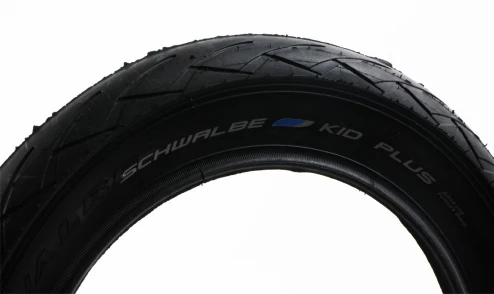 Le pneu Kid Plus HS413 de la marque Schwalbe permet d’équiper des vélos enfant de 12 ou 14 pouces, des poussettes ou des trottinettes.