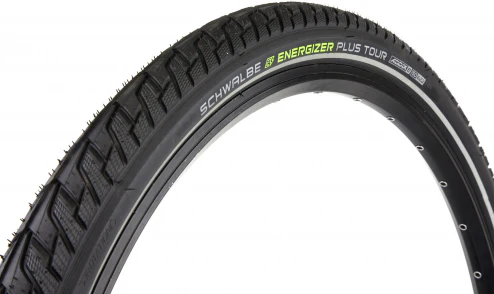 Le pneu Schwalbe Energizer Plus Tour 700 est un pneu vélo très polyvalent conçu pour une pratique en ville et pour le voyage. Il est donc idéal pour des sorties sur la route en ville comme sur des sentiers de terre lors de vos promenades. Issu de la gamme Performance Line, l’Energizer Plus Tour garantit un niveau de qualité élevé pour un usage important et régulier. Le pneu est fiable sur la durée, résistant avec son indice de sécurité de niveau 5 sur 7, offre de l’adhérence sur la route comme sur les sentiers ainsi qu’un roulement important.