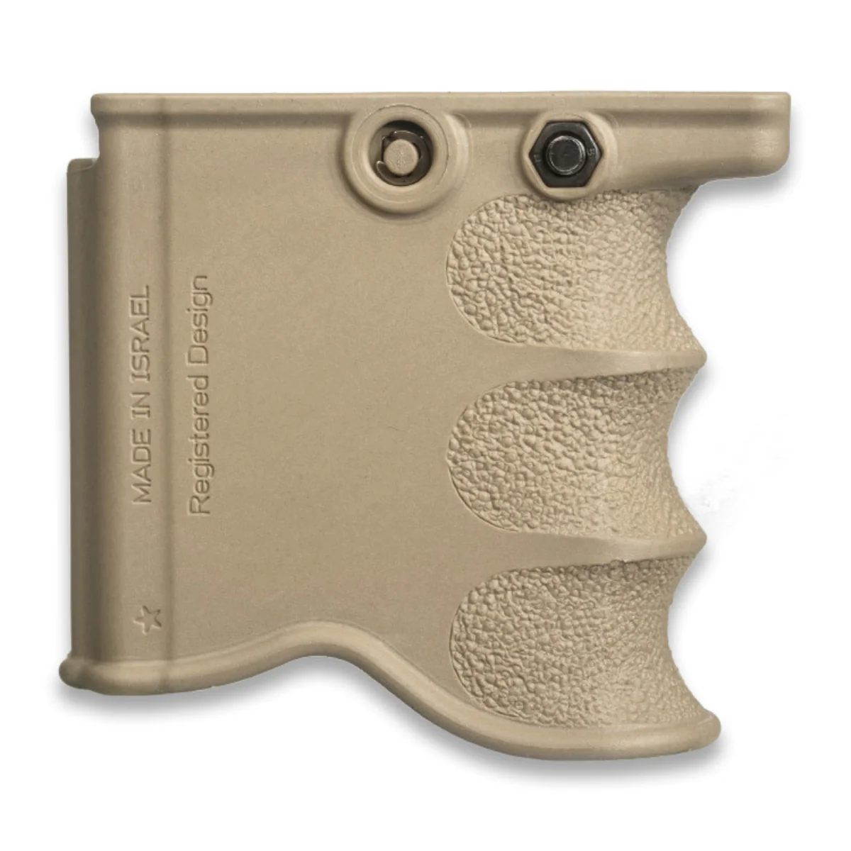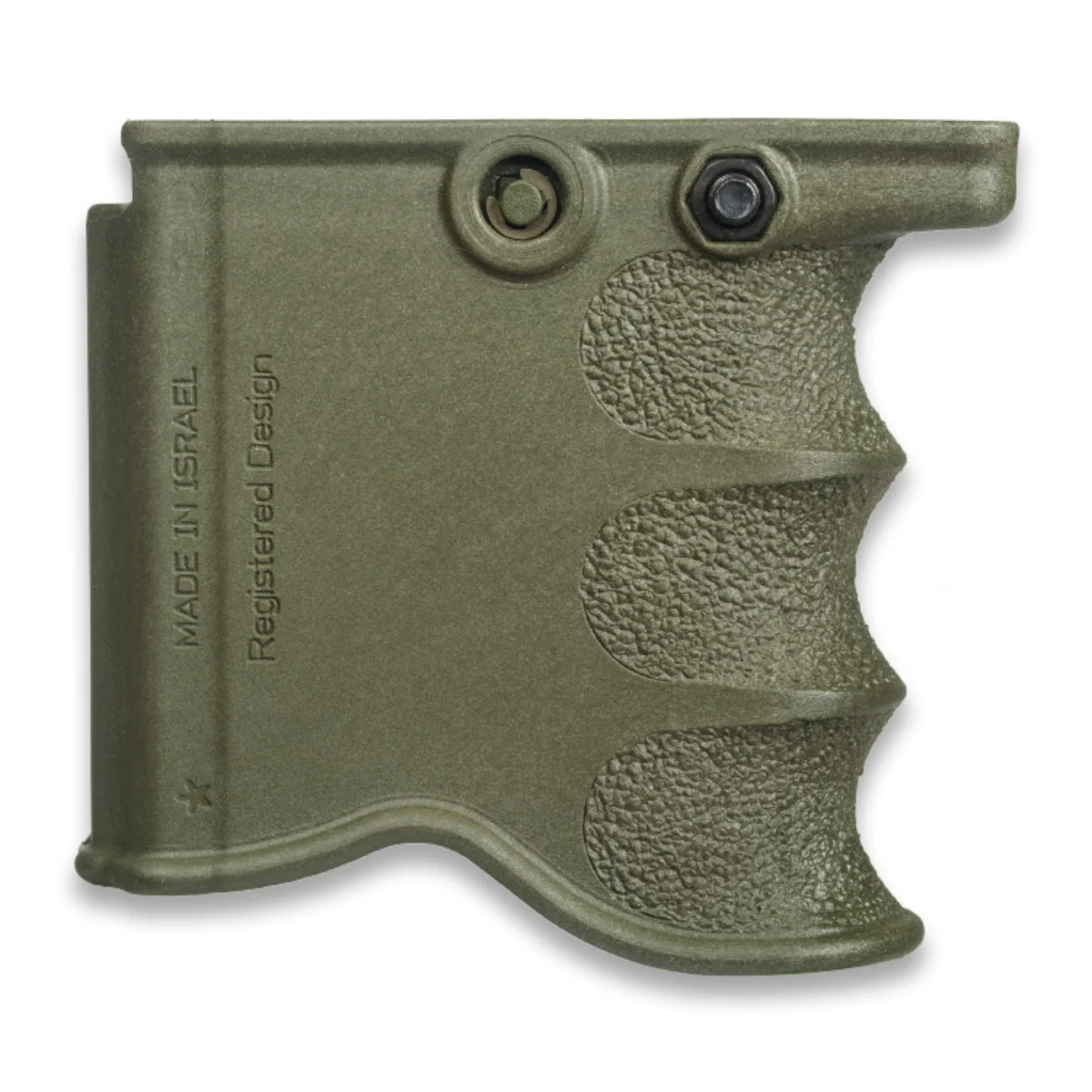 Sa fixation à dégagement rapide facilite l’installation et le retrait en quelques gestes, tandis qu’un second boulon verrouille solidement l’ensemble pour un montage durable selon la mission. La prise en main stabilise l’arme, améliore le contrôle et renforce la sécurité lors des transitions, y compris en conditions exigeantes.