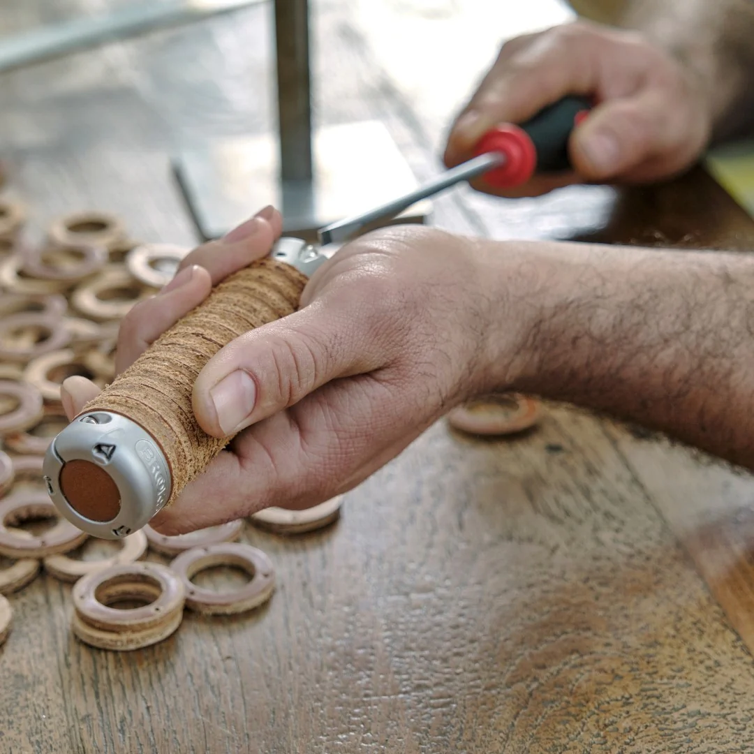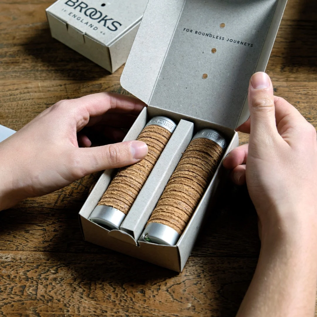 La force de ce produit est de proposer un produit durable et responsable, minimisant les déchets de la marque. Chaque poignée est constituée de rondelles en cuir tanné végétal, découpées dans les chutes de la production de selles Brooks. Maintenues par trois robustes rayons, ces poignées promettent une conduite confortable.