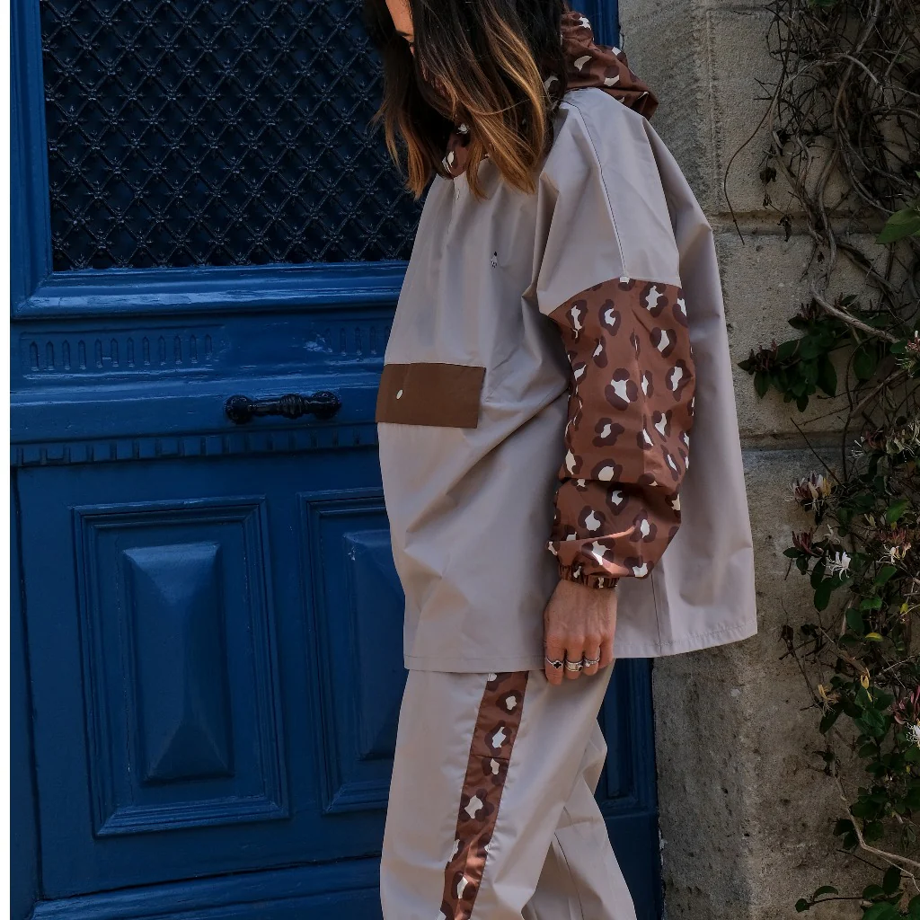 Derrière Poule Party se cache une volonté claire : proposer des vêtements de pluie originaux, écoresponsables et pensés pour le quotidien. La marque travaille avec des matières recyclées, soutient le bien-être animal en reversant une partie de ses bénéfices à des associations et revendique une identité pleine d’humour avec son slogan : « Mieux vaut être une poule qu’un pigeon ». Avec son imprimé Léopard, ce poncho court, décalé et élégant, transforme vos journées pluvieuses en moments stylés.