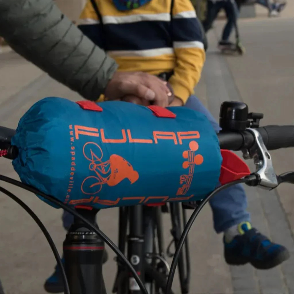 Spad de Ville, société française qui conçoit ses produits à Grenoble, propose le poncho de protection pluie Fulap, spécialement pensé pour apporter confort et bien-être aux cyclistes urbains dans leur usage quotidien du vélo. Usiné à partir de tissus généralement utilisés pour les sports de montagne, le poncho est robuste, respirant, étanche et léger. Avec sa visière fonctionnelle et son système KDS résistant au vent, cette cape anti pluie pour cycliste dispose de larges motifs réfléchissants sur les côtés et dans le dos, afin de garantir également une bonne visibilité à son porteur.