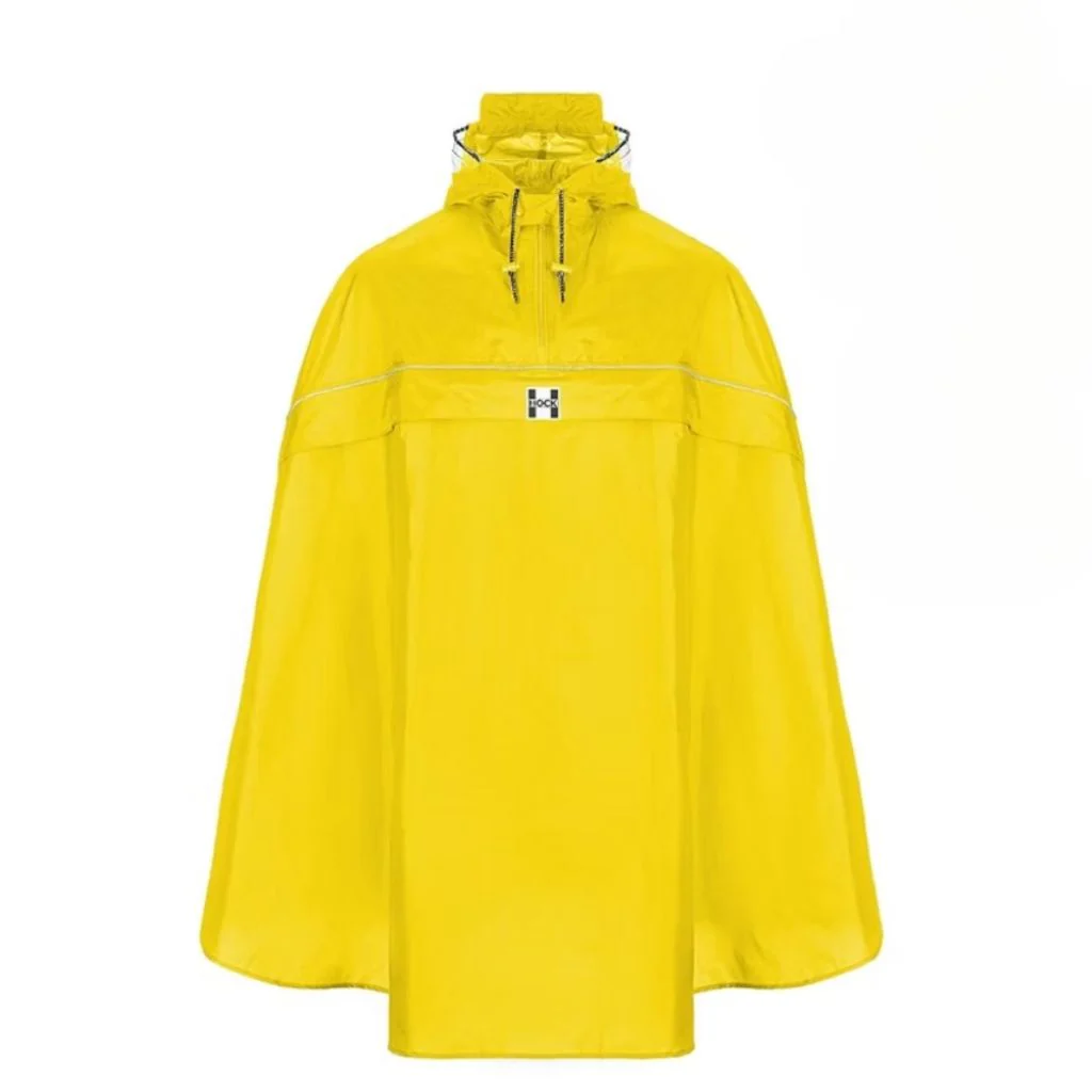 Ce poncho est équipé d’une capuche à visières latérales transparentes pour une excellente visibilité sous tous les angles. Un cordon vous permet de resserrer la capuche autour de votre tête afin que le vent ne s’y engouffre pas pendant que vous conduisez à vélo. Une poche avant peut accueillir vos divers objets et permet de ranger votre cape à l’intérieur quand vous avez fini de l’utiliser. Cette cape existe en 3 tailles et en deux couleurs.