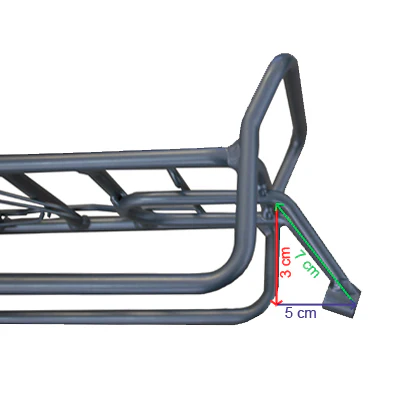 Ce porte bagage a pour dimension: longueur 27 cm, largeur 13 cm et hauteur 51 cm. Il peut supporter une charge de 15 kg et existe aussi en couleur argent.