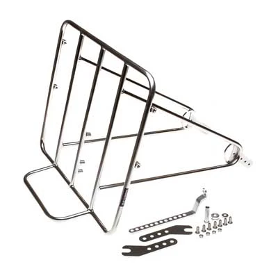 Le rack frontal chromé Frontière de la marque BLB se distingue par sa sobriété et sa robustesse. Constitué d’acier inoxydable haut de gamme, il est conçu pour une utilisation de tous les jours en donnant un look actuel au vélo. Ce porte-bagages permet de transporter aisément des articles de taille importante. Il est particulièrement approprié pour le cyclisme urbain.