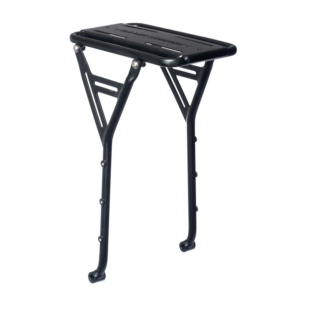 Il s’adapte à presque tous les types de vélos et notamment aux gravel et VTT tout-suspendus. Sans lien avec la tige de selle, il est aussi compatible avec les vélos dotés d’une tige de selle télescopique. Le porte bagage peut être monté à l’avant comme à l’arrière grâce à un double jeu de haubans fourni.