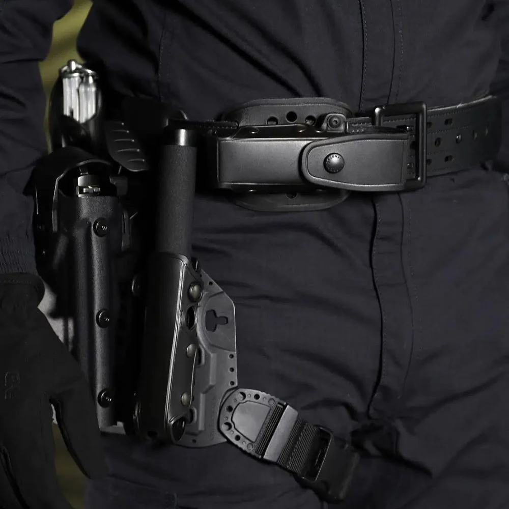 Il accepte les bâtons GK #BLK8021, #580AC-21 et #581AL. Il se fixe via un passant de ceinturon et se porte sur une ceinture ou un ceinturon de 50 mm, ou sur la plaque de hanche #97005KT selon le besoin. Cette configuration garantit un accès constant au bâton et un positionnement cohérent avec les autres équipements.