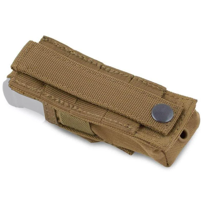 Compatibile MOLLE, il se fixe via passants MOLLE sur gilet tactique, plate carrier, ceinture ou sac dédié. Le rabat auto-agrippant type Velcro maintient fermement le chargeur et offre une ouverture fluide pour accélérer le rechargement lors d’une opération ou d’une patrouille.